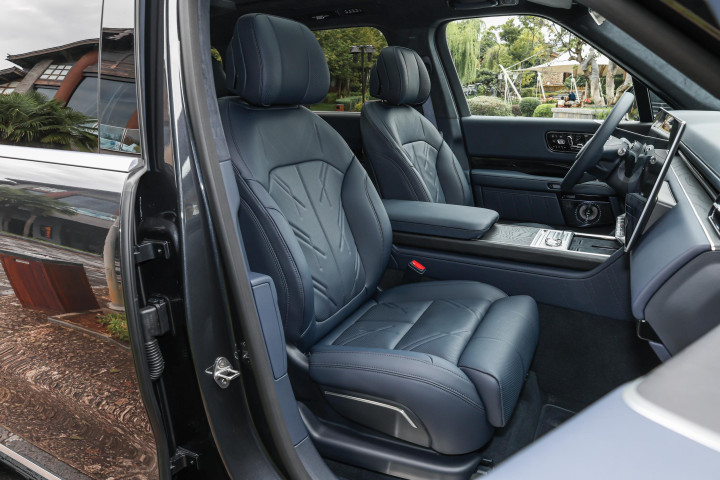 在配置上,32扬声器的Naim音响系统峰值功率高达3868W,我在后排听了一首交响乐,清晰地听到弦乐和铜管的层次;支持杜比全景声和六种音场模式,能让人有置身音乐厅的感觉。17英寸3K超清OLED后排屏则满足了影音需求;9升冷暖冰箱静默运作,把饮料和水果随手拿,不用担心温度走样。Soft NAPPA全粒面头层真皮座椅、二排电动遮阳帘、前后多层隔音玻璃、RNC主动降噪等豪华配置,则进一步提升了车内的精致度。