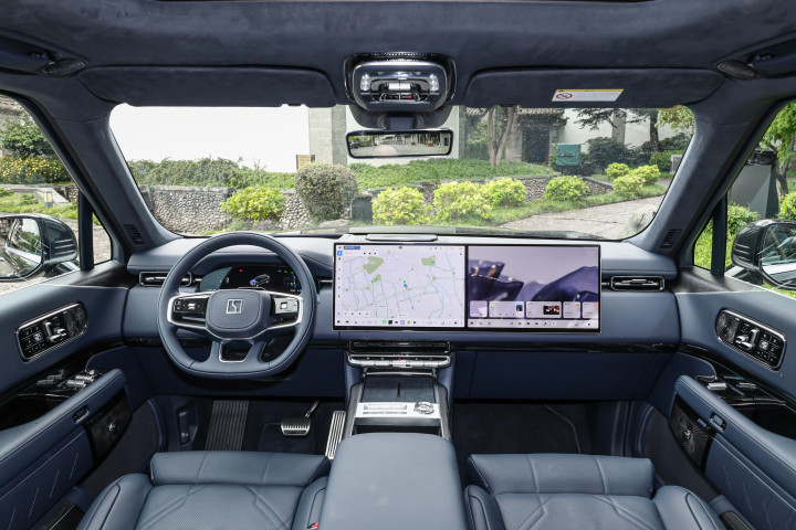 在尺寸上,极氪9X长5239mm、宽2029mm、高1819mm,轴距3169mm,把它定位为大型SUV再合适不过。走进车内,第一感觉就是空间非常开阔。两种内饰布局都很吸睛:16英寸mini-LED悬浮中控屏搭配全液晶仪表的经典组合,视觉冲击感强;16英寸3.5K OLED双联屏则更富未来感,边缘过渡和色彩表现都细腻。最让我拍案叫绝的是47英寸AR-HUD抬头显示,白天在挡风玻璃上就能看到导航、车速、语音提示等信息,视线几乎不用离开前方。